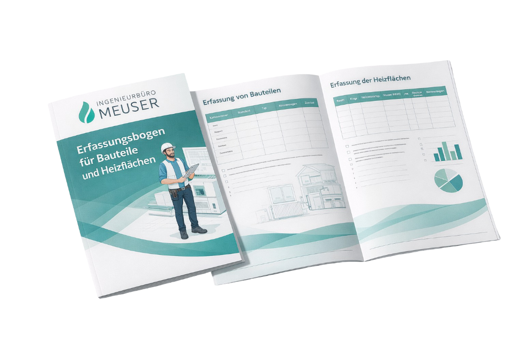 Unsere übersichtliche Excel-Tabelle macht es Ihnen besonders einfach, alle notwendigen Daten bereitzustellen. Für die Heizlastberechnung und den hydraulischen Abgleich steht jeweils ein eigenes Tabellenblatt zur Verfügung, Sie füllen nur das aus, was Sie tatsächlich beauftragen möchten, und senden die Datei mit. So sparen Sie Zeit und behalten den Überblick, ganz ohne Fachkenntnisse. Wenn Sie einen Vor-Ort-Termin wünschen, müssen Sie die Excel-Tabelle nicht ausfüllen, die Datenerfassung übernehmen wir vollständig für Sie.